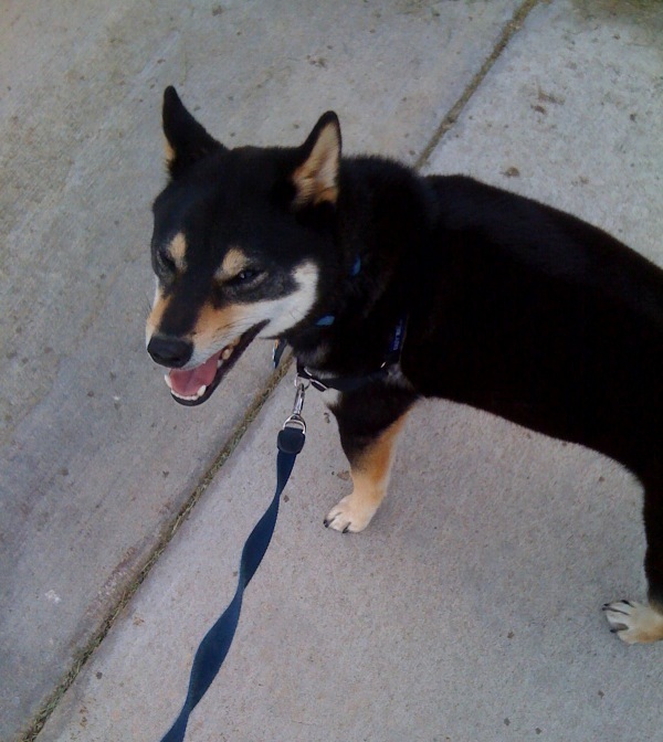 I was too busy gabbing with my sister on the phone on the way home from work today that I missed my exit for the gym. So I decided that I would just head home and take Tomo for a walk. There's a route through our neighborhood that's about 2 miles, and I figured if I walked briskly, it would be a good workout. So away we went.